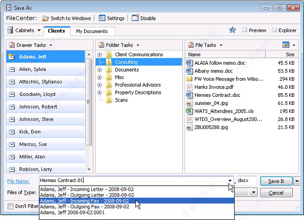 无论您是需要一致命名约定的办公室,还是反复使用相同文件名模式的人员,FileCenter都能让您的生活更轻松。FileCenter具有可重复使用的文件夹布局和标准化的文件名。设置最常用的名称,并在命名文件或创建文件夹时调用它们。