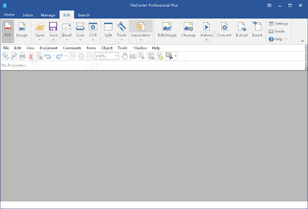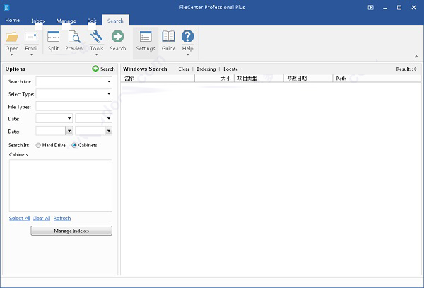 FileCenter将可能被认为是几个不同程序的内容组合到一个单一的,流畅的界面中。您可以轻松地从一个任务转移到另一个功能,实现许多与日常文件相关的工作,而无需离开界面。您可以在这里看到FileCenter的主要部分,并向您显示要访问的功能的位置。如果您查看FileCenter界面的顶部,您将看到一行四个选项卡:文件、管理、编辑和搜索。