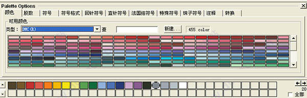 这里可以显示所有的绣线、显示已经使用的绣线、可以按照序号排序