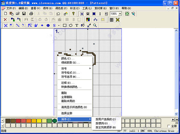 我爱绣是一款可用来创作和编辑十字绣图案的windows程序,它可以帮助您预先设置绣图的针法、颜色、图案、针织的规律,设置好以后就可以启动电脑控制打印设备将您的作品快速打印出来,这样就可以得到一份完整的十字绣了,通过这样的设计方式,可以免去手动针织的复杂操作,提高设计的效率!