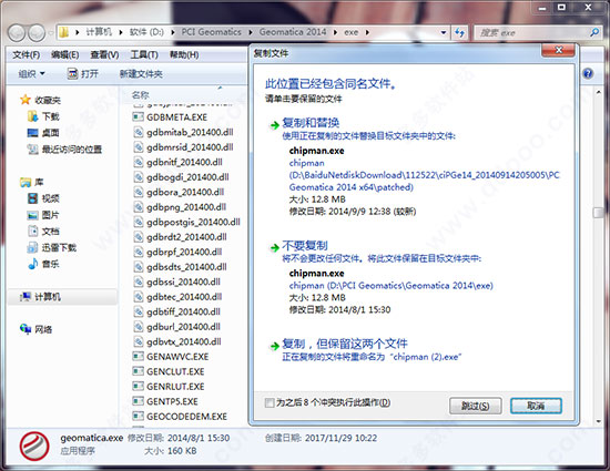 7、安装完成后,打开安装包下的“patched”文件夹,将破解补丁复制到安装目录下覆盖源文件,默认目录为C:\PCI Geomatics\Geomatica 2014\exe