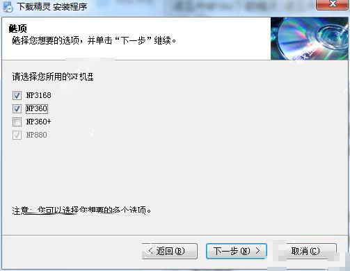 5、选择您所使用的诺亚舟NP机型,该程序支持NP3169、NP360、NP360+、NP880四种NP型号,用户根据自己的需要进行选择,支持多选