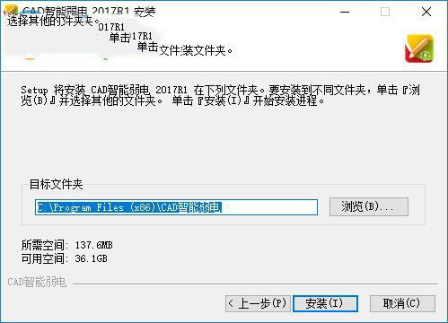 2、设置软件的安装地址,这里选择C:\Program Files (x86)\CAD智能弱电
