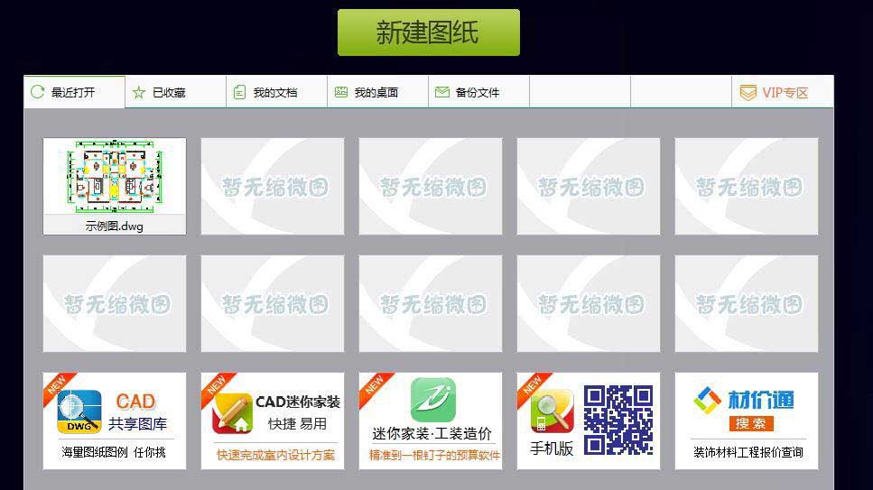 1、这里是软件的新建图纸部分,可以点击一种设计新图纸的方式,或者选择打开已经收藏的图纸查看