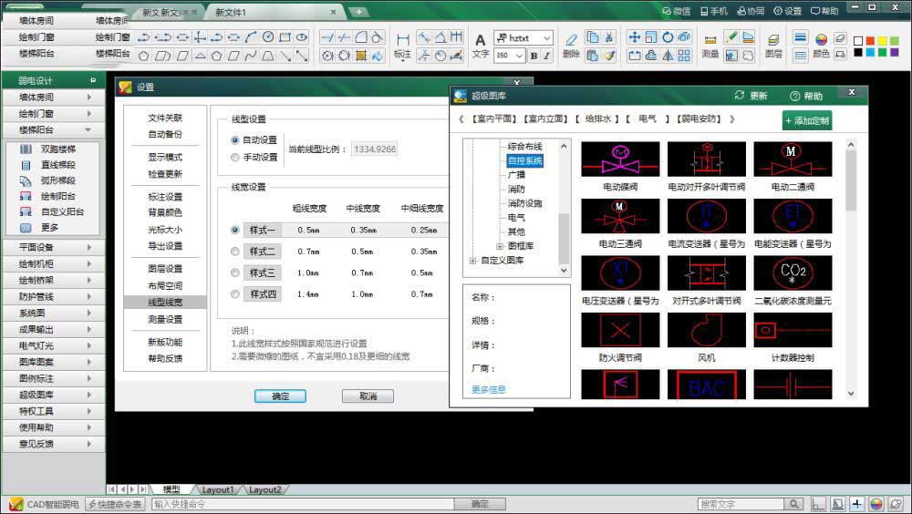 CAD智能弱电是一款功能强大、简单易用的弱电设备安装设计工具,例如在设计电话线,设置电脑线路、设计家具电器系统的安装等,都可以通过这款软件提前设计安装的方案,CAD智能弱电主要的功能就是设计图纸,您可以通过软件预先配置家庭电路的布局方案,并通过家庭电气设备的放置位置建立电气线路,内置室内图纸模拟、给排水、电气、弱点防护、空调、电视、防火工具等丰富的图纸设计方案,您可以利用 CAD智能弱电软件轻松设计出合适家庭使用的电路控制系统,需要的朋友快来下载使用!