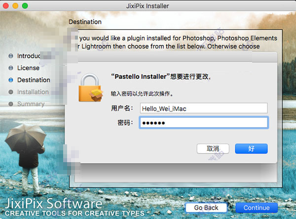 5、出现输入密码提示时将macOS开机密码输入然后点击“好”