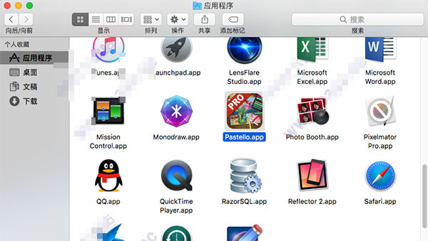 7、之后我们便可以在MacOS自带的文件管理器的“应用程序”栏目中找到我们的Pastello Mac 破解版,找到它之后我们就可以双击打开将它运行了