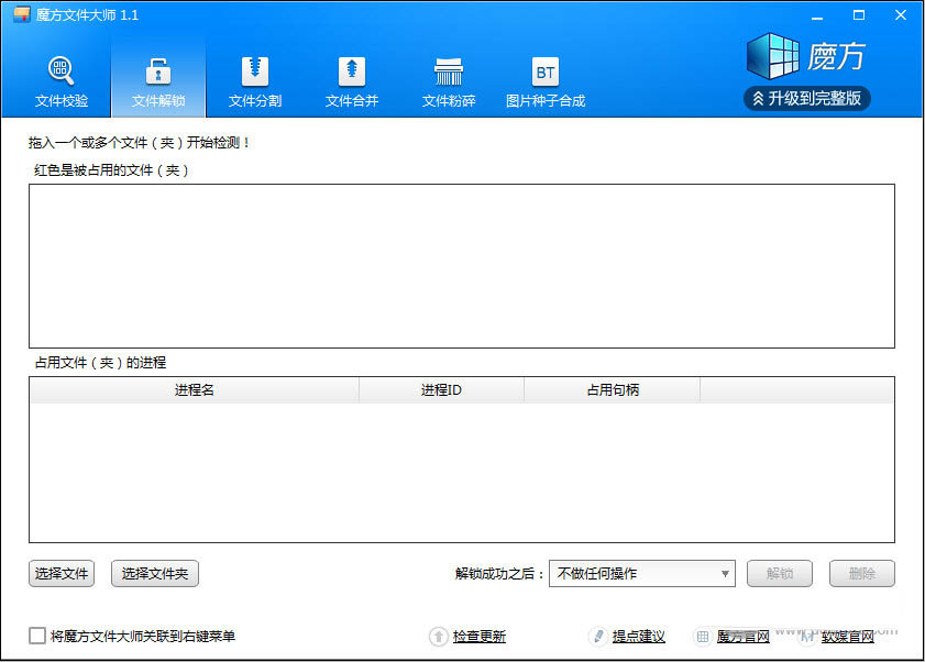 2.文件解锁,一键解锁秒杀删不掉的顽固文件、病毒文件或者被占用的文件。