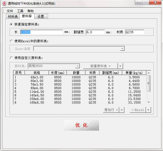 通用线材下料优化系统可以免费下载试用,但是试用版有使用次数、时间和功能上的限制。注册购买以后试用限制会被解除,您将成为正式版用户,并获得技术支持与服务。