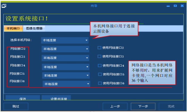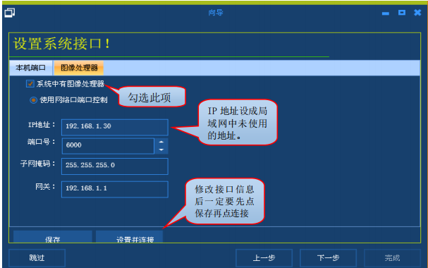 (3)设置系统接口。系统接口设置分为二个部分:本机端口、图像处理器。