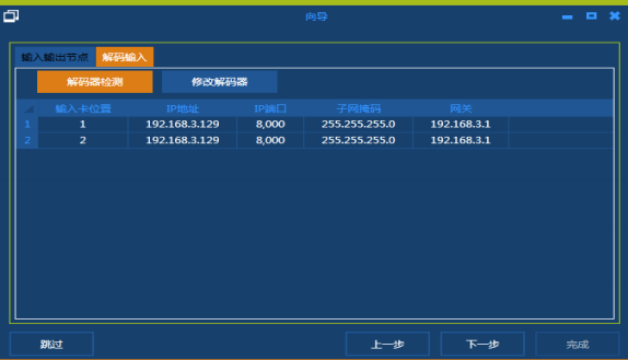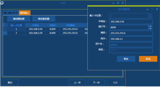 在解码器配置窗口中,IP 地址和端口号都可以修改,掩码和网关不可编辑。修改好后点击“修改”按钮保存。