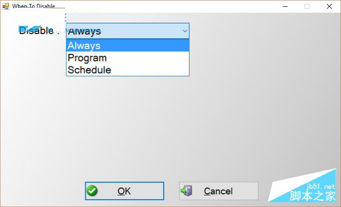 您可以选择是否始终禁用密钥,仅针对特定程序或基于时间和周计划禁用密钥。