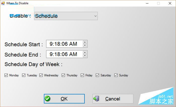 3.在出现的新屏幕中,设置所需的禁用模式(对于特定的程序或基于时间和周计划)。