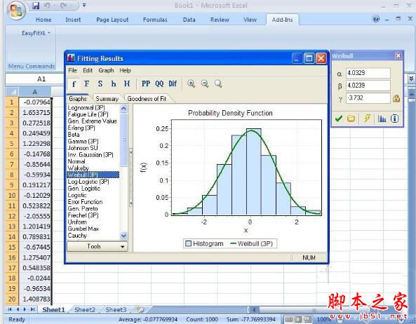 EasyFitXL是一个Microsoft Excel加载项,使EasyFit的大部分功能可供Excel用户使用。 EasyFitXL集成到Excel的主菜单中,允许您在Excel中执行数据分析和模拟。