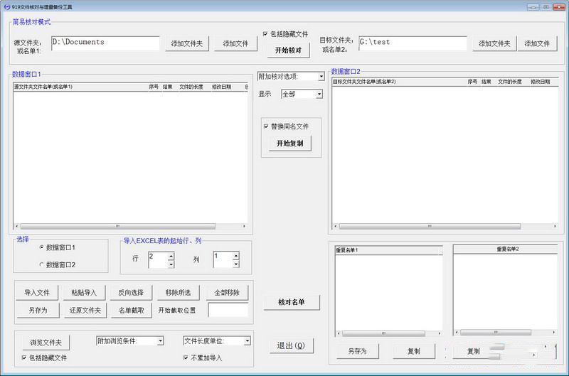 3、可核对两份保存在文本文件或Excel文件中的名单的异同。