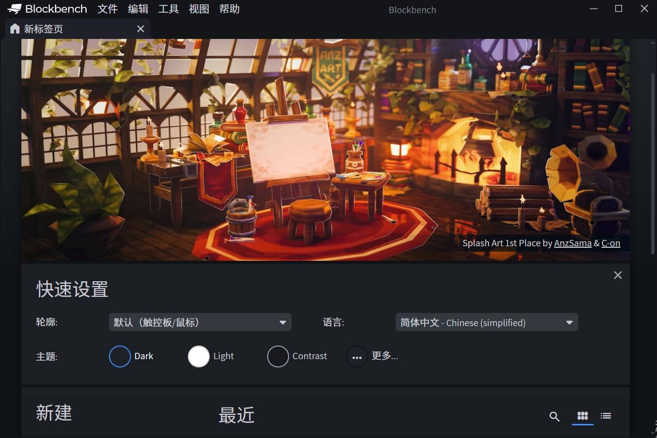 1、下载Blockbench软件直接打开就可以了,显示的建模界面如下图