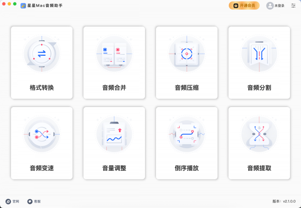 星星Mac音频助手 V2026.02.05 苹果电脑版星星Mac音频助手电脑端使用的音频格式转换工具,提供了音频格式转换、音频压缩、音频合并、音频分割、音频变速等...