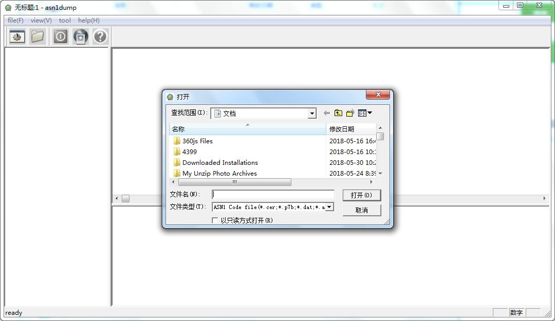 asn1dump供了简单的文件编码格式查看功能,当你需要知道文件编码数据的时候可以选择小编推荐的这款程序打开对应的编码文本,例如您可以选择打开.cer文本,打开p7b文本、打开dat文件,也可以选择打开常见的asn1文本,打开以后软件自动将结构展开,通过目录树的方式让您阅读编码数据;新版增加了base64代码查看,也能将展开的数据复制,操作功能很多!