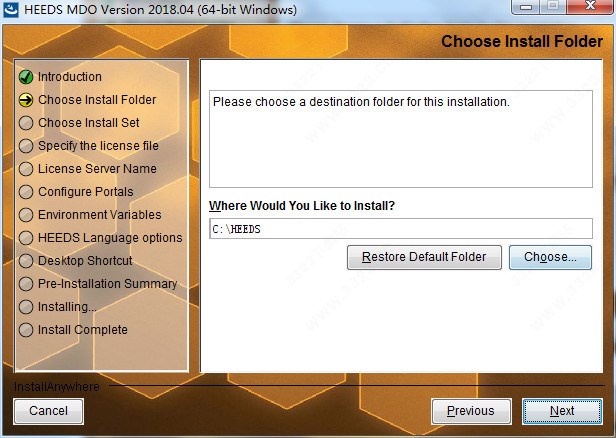 2、点击next选择要安装的目录,默认为“C:\HEEDS”