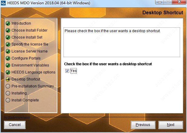 9、是否设置HEEDS MDO 2018的桌面快捷方式,点击YES