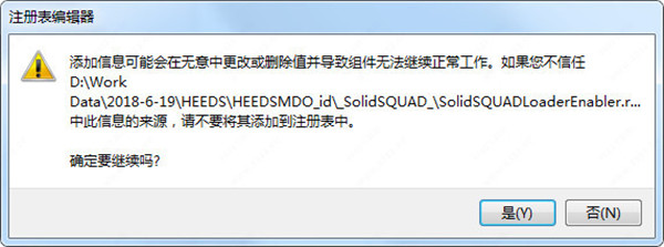 4、运行“SolidSQUADLoaderEnabler.reg”,载入注册表信息