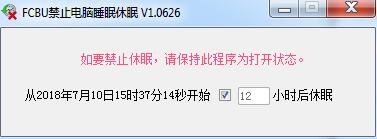 FCBU禁止电脑睡眠工具是一款可以帮助用户在多长时间之后进入休眠状态的工具,防止电脑在无人状态下系统关机,待机休眠和重启等问题,操作简单使用方便,让用户可以指定时间后休眠,以节约用电,降低电脑损耗。需要的朋友可以前来下载使用。
