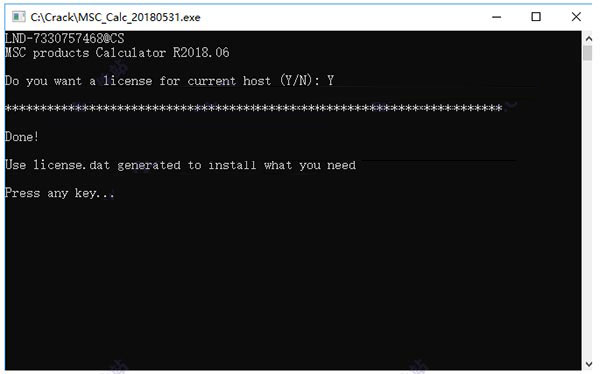 2、首先在MAGNiTUDE破解文件夹中找到MSC_Calc_20180531.exe,右键管理员身份运行,输入Y点击回车生成许可证文件;