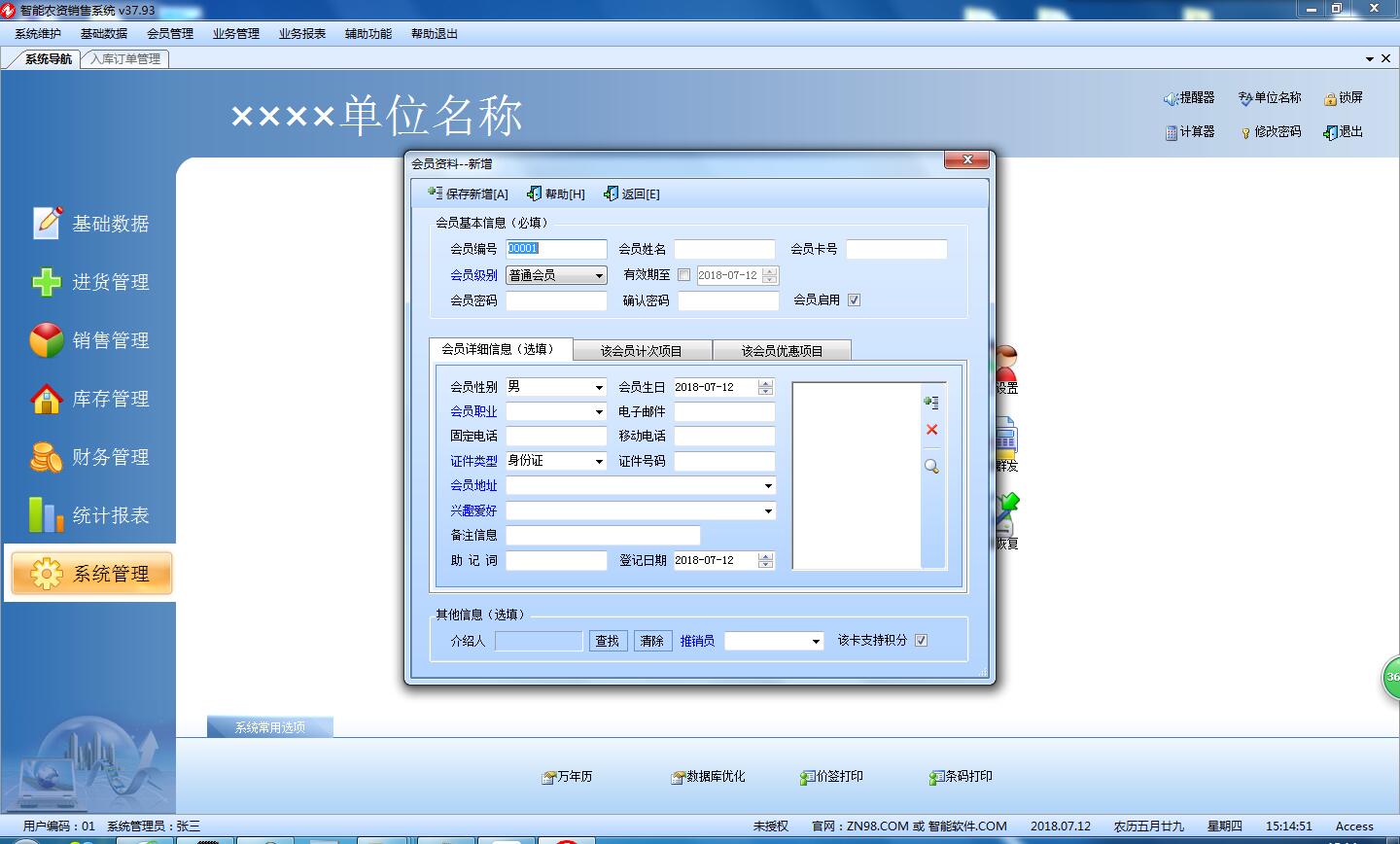 14、支持灵活多样的会员分类、积分、消费额累计、会员消费报表等。