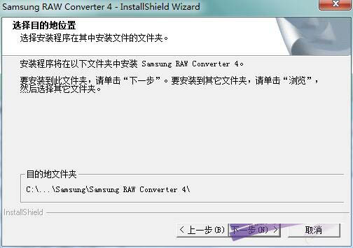 5、选择Samsung RAW Converter 4目的地位置,默认C盘,可以点浏览修改