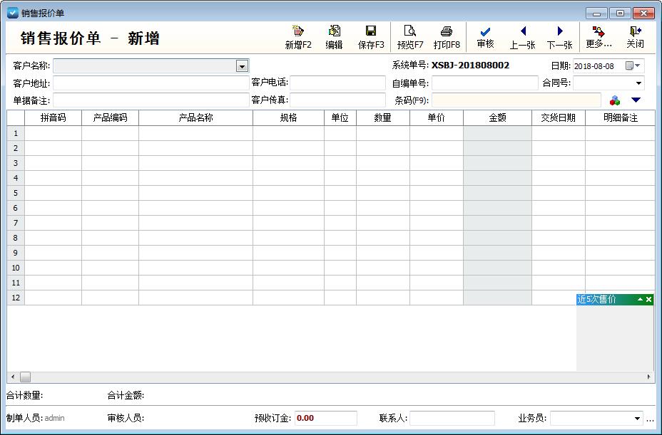 (1) 管理客户报价:可独立使用,自由设计报价单打印格式;也可生成销售订单,实现销售流程跟踪追溯功能。