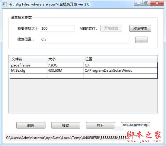 金旭亮查找大文件工具是一款非常实用的电脑大文件搜索查找工具。您可以指定文件搜索位置以及文件的大小,软件在接受到您的指令之后就可以按照您的条件为您搜索相关的文件,并且在搜索后您还可以直接打开所在文件夹进行查看,感兴趣的朋友千万不要错过了。