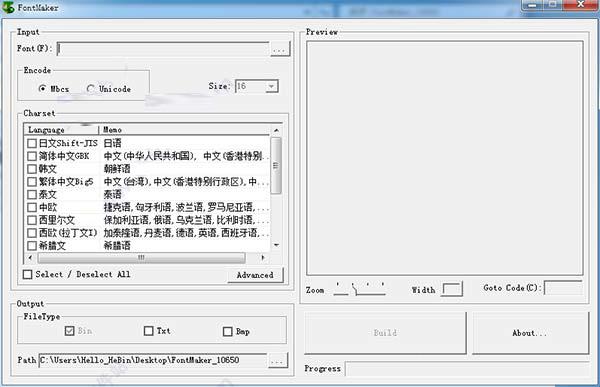 FontMaker是一款简单易用,功能强大的点阵字库生成器软件,它能够支持生成多国文字非等宽显示点阵字库,可以自由生成任意字体、不同大小的点阵字库,主要应用在所有需要文字显示的嵌入式系统中。软件操作非常方便,支持所有windows字符集,实用性非常强。为了方便大家体验,为大家推荐FontMaker破解版,本程序经过绿色破解,打开即用,没有功能限制,有需求的朋友请下载体验!