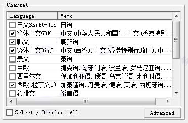 如果您选择的是MBCS 编码方式,又有选择多个字符集,则会输出多份上述文件。