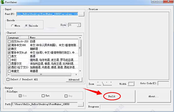 ⑦点击 build 按钮,稍等片刻,即可生成您所想要的字库文件。
