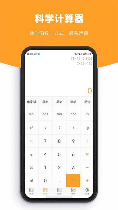 标准、科学、分数计算一键切换。