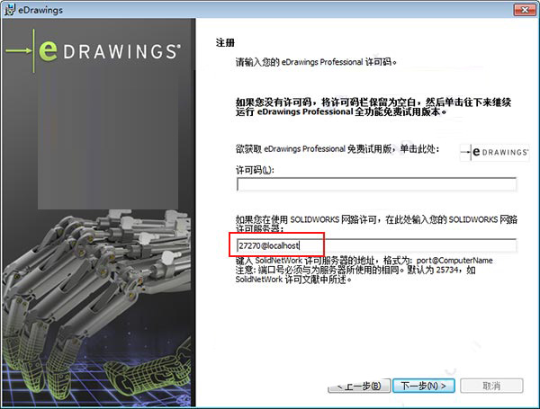 3、输入网络许可服务器【27270@localhost】
