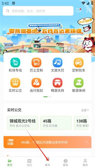 成都公交提供所有公交线路信息,包括所有站点信息以及所在线路上的实时公交位置数据。