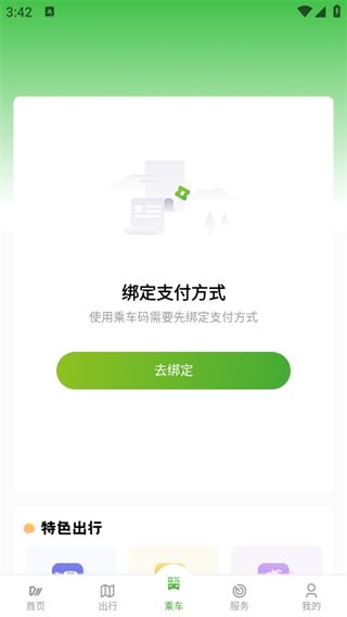 2、登录成功之后回到首页,点击如图所示的乘车。