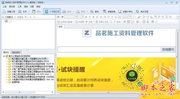 品茗电力资料管理软件是一款好用的电力工程软件。这款软件支持便捷的工程概况输入,拥有更具人性化的操作流程、智能自动创建关联表格、多个子单位同步编辑,功能非常丰富实用,感兴趣的朋友千万不要错过了。