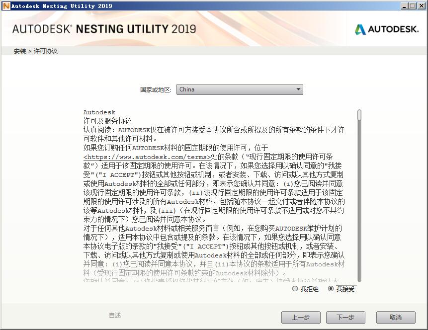 4、点击安装出现autodesk的协议,选择我接受继续安装