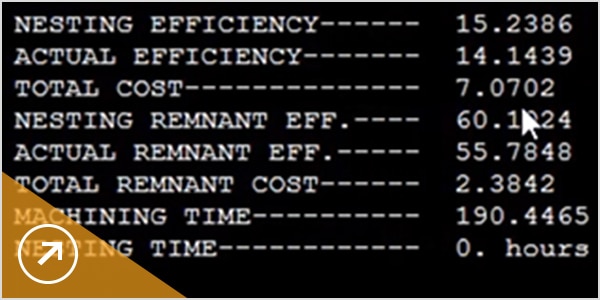 轻松查看和比较每个嵌套方案的报告。获取详细信息(如整体效率、总成本和加工时间)