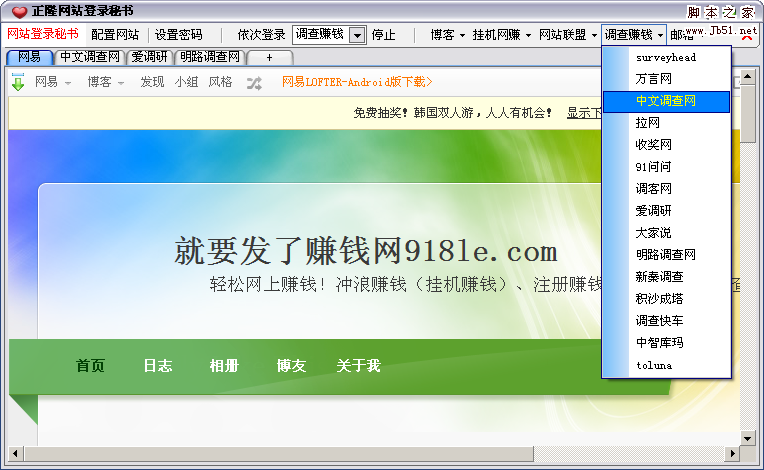如果你是需要经常登录各种不同的网站(比如,经常做网络调查赚钱、经常登录各种论坛、经常登录邮箱、经常发微博等),正隆网站登录秘书将给你提供极大的方便!