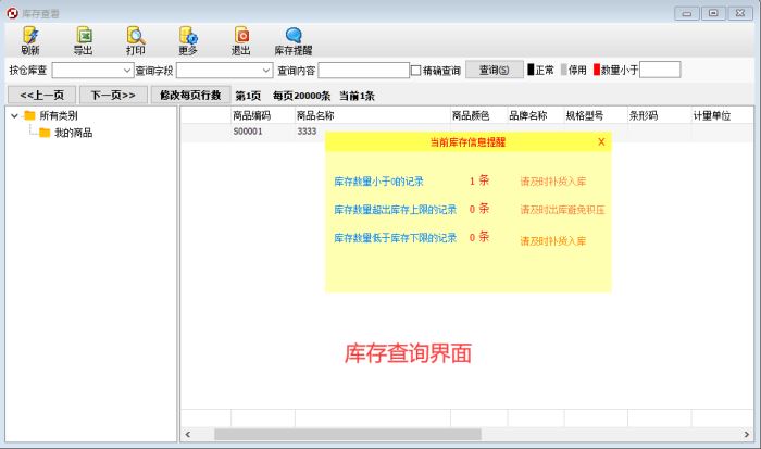3)可以设置不同库存数量以不同的颜色显示记录,使得库存信息查询更加清晰,可以分仓库统计库存报表