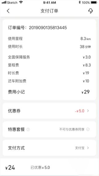 5、还车成功后,可通过微信,支付宝等方式进行支付,支付过程中会自动优先使用优惠券及最优套餐结算。