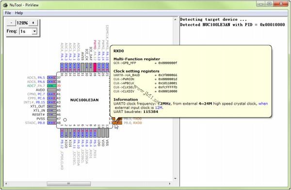 NuMicro PinView Tool(以下简称PinView)是一个可视化的管脚状态检视工具。PinViewTool可以当作一个单独的程序运行,也可以作为Keil或IAR的插件启动。在程序运行时或调试时,能直观的显示出管脚的IO设备状态,并能对一些常见的管脚错误给出警告。