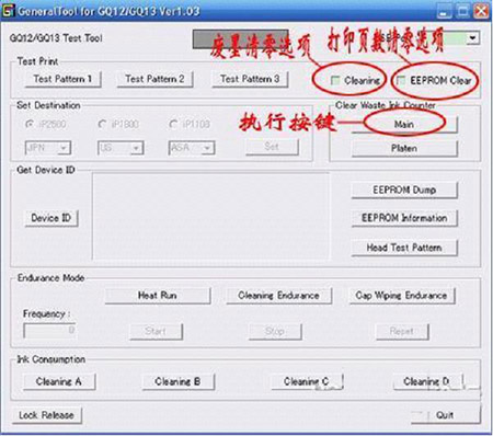 当然,不一定要打印检测页,你也可以按"epprom information"按钮,查看清零结果,如果成功的话,最后一行的值应该全部是“0000”