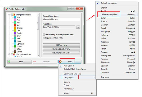 你还可从这里下载更多的 FolderPainter 图标包,将每个图标文件夹(Pack_04,Pack_05,….. Pack_21)放在 FolderPainter 的 Icons 目录中,然后打开 Folder Painter 并单击 “添加新建菜单” 按钮,然后再重复前文的步骤,将选定的图标安装到鼠标右键即可。