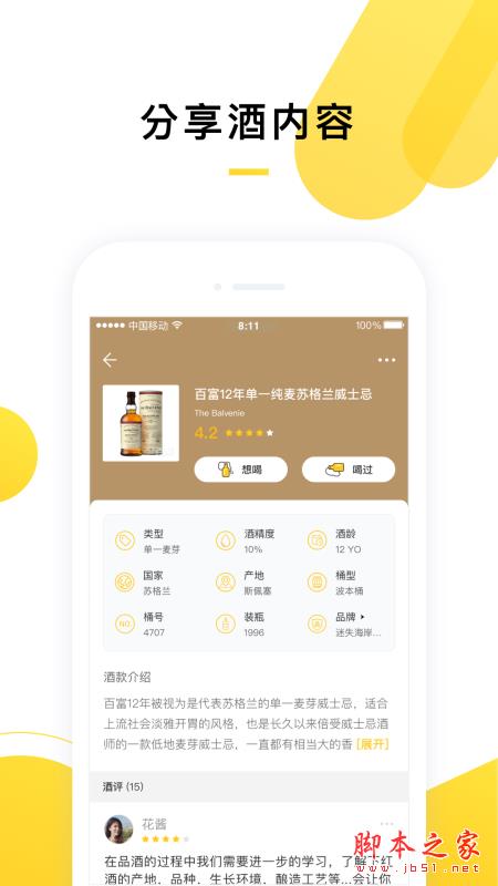 为美酒爱好者打造的专业酒类社区,你可以在这里了解酒知识 、评价酒品质、分享酒内容、结交新酒友。