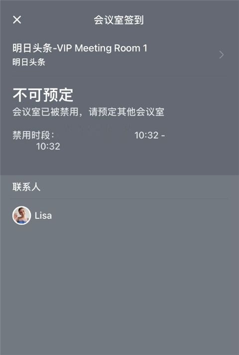 如果该会议室由于禁用、预定时间限制、预定范围限制等原因,在当前时间无法预定,签到页面将显示为灰色,成员可点击 查看会议室空闲情况,查找空闲时段进行预定,或选择预定其他会议室。