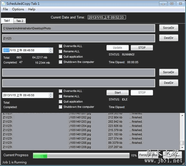 2.开启 ScheduledCopy 后,可利用所提供的四组自订排程来操作,首先在 SorceDir 来选择要复制的来源资料夹;接下来选择目的地的资料夹;确定后,开始要设定要启用复制的时间后,点击[Start]便会进入排程。